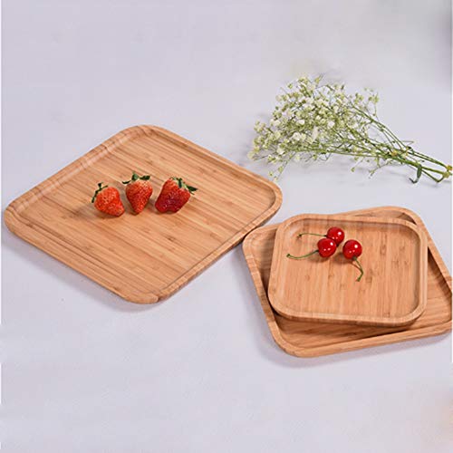 Zyrtp Bandeja Cuadrada de Madera - Bandeja de Desayuno Antideslizante de bambú multifunción, Juego de té, Restaurante, Hotel, Bandeja para Servir Platos, Madera, 25 * 25 * 2cm