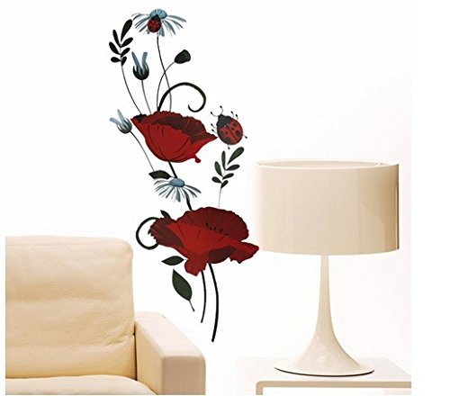 Rama de flores rojas amapolas Flores Tatuajes de pared Pegatinas Calcomanías Decoración del hogar Elegantes flores modernas Decoración de dormitorio vivo Cocina