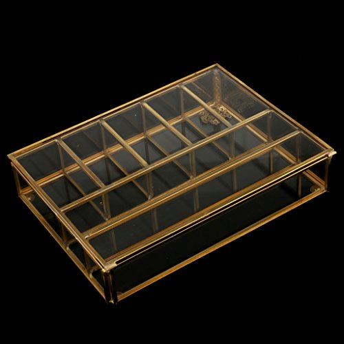 - Los bordes de latón y el vidrio transparente están soldados a la perfección, y el magnífico estuche de vidrio abatible permite a la organización despejarse de un vistazo y también puede evitar que entre el polvo.