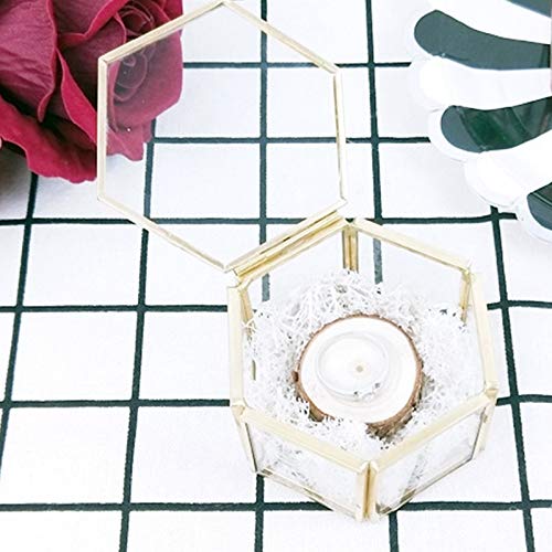 - ★Alta Calidad: Rejilla de vidrio de estilo clásico caja de joyería caja de terrario . Forma geométrica de polígono con un impecable corte dorado, que muestra una calidad elegante con simplicidad.