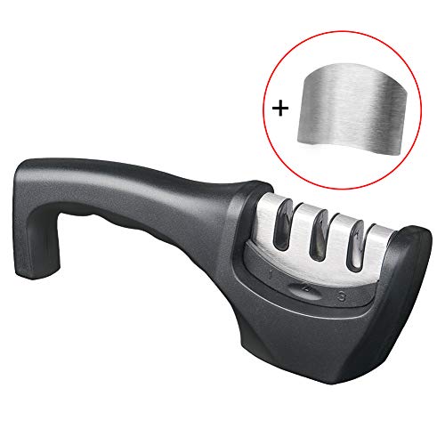flintronic Afilador de Cuchillos, Afilador de Cuchillos Manual de 3 Etapas, Base Antideslizante para Kinfe de Cocina, para Cuchillo Santoku, Cuchillo de Cocina, Tijeras (Incluye 1 Protector de Dedos)