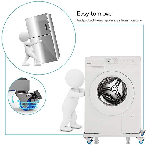 Dewel Base Ajustable de 54cm~74cm con 8 Tubo de Acero inoxidable, 4 Ruedas Giratorias y 4 Pies de Goma Soporte para Lavadora, Secadora y Refrigerador. máxima de carga: 500 kg.