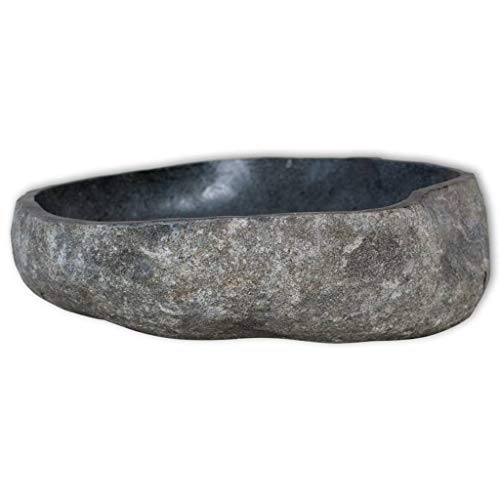 vidaXL Lavabo Rústico Forma Ovalada Piedra Río Natural 38-45 cm Lavamanos Baño