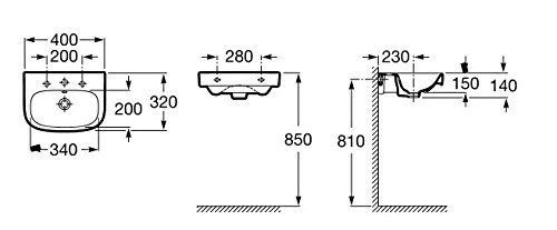 Roca A325998000 Colección Debba - Lavabo de porcelana mural, color blanco, 400x320x105 mm.