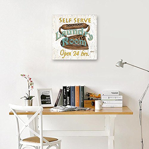 FAN C. Cuadro sobre Lienzo – Auto-Servicio De Lavandería Pintura Pintura Arte Palabra Vintage Pared Impresións – 40X40 cm