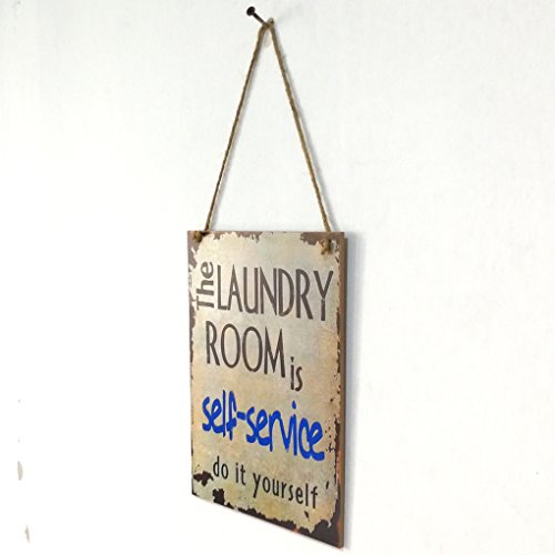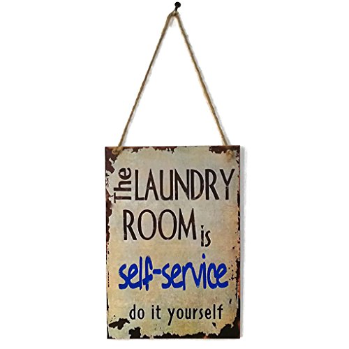 Sunlera Lavadero Lavandería tablón de autoservicio letras de madera Junta colgar de la pared Aviso Panel de señal de peligro Placa Decor