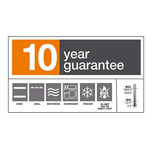 - Apto para frigorífico, congelador, microondas y horno (de -18 °C a +260 °C); no apto para fuentes de calor directo, limpieza fácil gracias a la superficie esmaltada; apto para lavavajillas