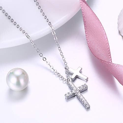 EVBEA Mujer Collar Colgante de Cruz Doble Plata de Ley Circonita Cúbica Joyería Religiosa Regalo de San Valentín para Mujer