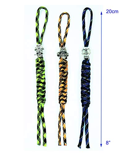 Danuland Cordón de Cuchillo de Bolsillo Paracord con Cuentas de cráneo de aleación, Colgante de Cordones artesanales para Cuchillo Plegable/Engranaje al Aire Libre/Celular, 3 Piezas