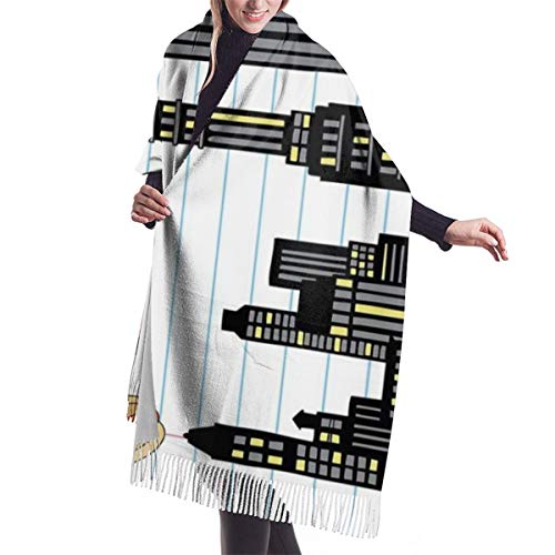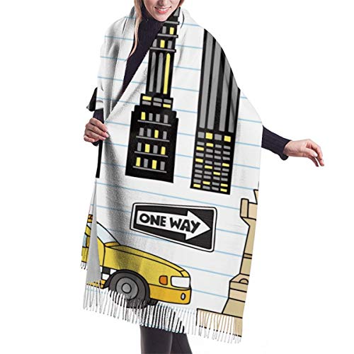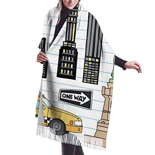 Starodec Pashmina Borla Bufanda Estilo de boceto del puesto de perritos calientes de la Gran Manzana Manhattan Of Liberty de Nueva York Chal Mantón de Invierno