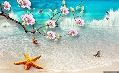 Fotomurales 3D 250x175 cm Paisaje Marino Magnolia Estrella De Mar Playa Papel pintado no tejido Decoración de Pared decorativos Murales