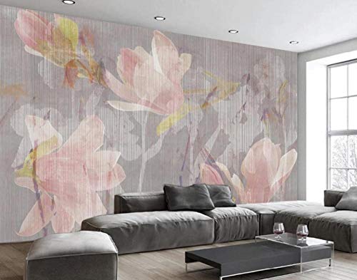 Papel Pintado Fotomurales 3D Flor De Magnolia Rosa Pintada A Mano Nostálgica Papel pintado no tejido Decoración de Pared decorativos Murales 250x175 cm