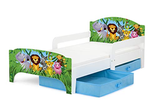 Leomark Smart Cama Infantil de Madera - ZOO - Marco de Cama, Colchón y Cajón, robustro Cómodo Dormitorio Impresa, Muebles Para Niños, Espacio para dormir: 140/70 cm