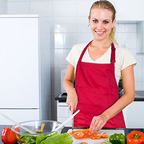 Delantales de Cocinero, Diealles Chefs Cocina Delantal con Correas de Cuello Ajustable y Bolsillos,Perfecto para Cocinar, Hornear - Rojo