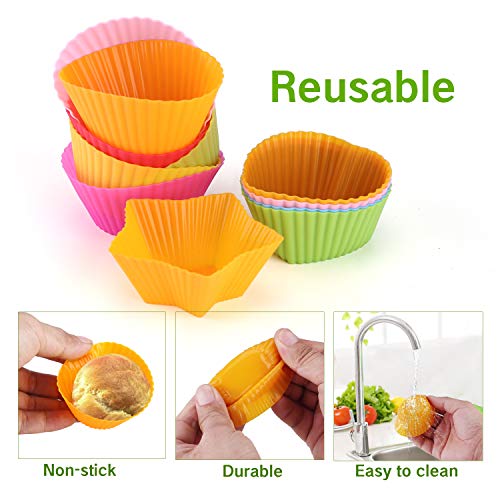 - Pack de 24 moldes de horneado reutilizables, hechos de silicona para uso alimentario: ideales para hornear, almuerzo, snack, etc.