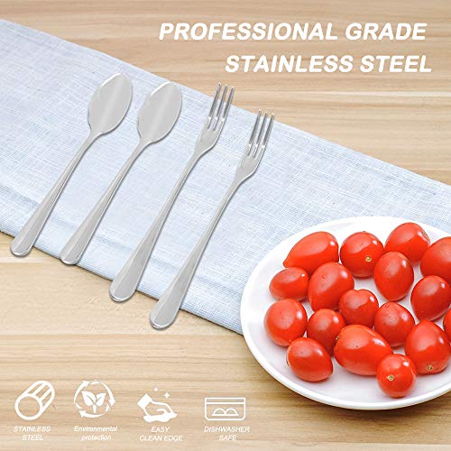 - Acero inoxidable – Nuestras cucharas y tenedores de acero inoxidable son de metal brillante, grueso, no barato o flexible, mango ergonómico, duradero.