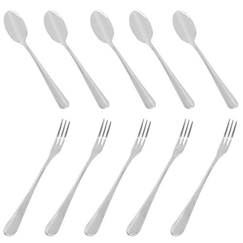 Juego de 10 cucharas de café Demitasse (4 pulgadas) y tenedores de acero inoxidable (4,8 pulgadas), minicucharas de café y tenedores para postres, té, aperitivos