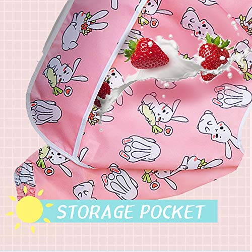 - LIGHTWEIGHT & WATERPROODF - Los baberos de manga están hechos de tela impermeable ligera con un bolsillo extraíble, resistente a manchas y olores, salud para sus bebés. La tela es BPA, PVC, vinilo, ftalato y sin plomo.