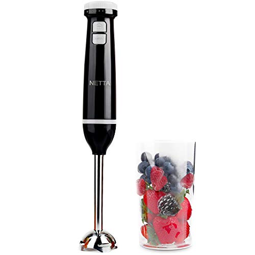 NETTA 600 W batidora de mano con vaso de 700 ml, velocidad variable y ajuste turbo, cuchillas de acero inoxidable 304 de grado alimenticio y palo, libre de BPA.