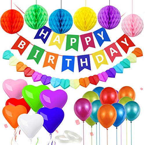 Decoracion Cumpleaños, Globos de Cumpleaños, Adornos Cumpleaños, Feliz Cumpleaños Decoracion, Guirnalda Feliz Cumpleaños, Happy Birthday Decoracion para Niño, Niña, Adultos, Mayores (Multicolor)