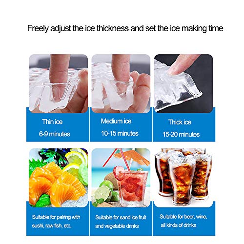 - COMPLETAMENTE PORTÁTIL: para hacer carámbanos grandes o pequeños sin tuberías, la máquina de hielo es completamente portátil porque no requiere tuberías ni drenaje. La máquina de hielo puede hacer cubitos de hielo en 3 tamaños, por lo que puede hacer el cubo perfecto para bebidas heladas.