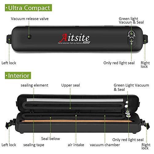 - [Materiales de alta calidad]: los materiales en ABS con aspecto de acero inoxidable con una generosa tecnología de succión 3D de hasta 60 kPa, junto con una amplia barra de calentamiento de 32 cm que hacen que el vacío y el sellado sean más eficientes, el diseño de banda de sellado de ancho extra de 3 mm evita que el aire se filtre de manera efectiva que otras marcas.