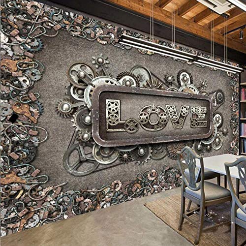 Murando Fotomurales 3D Mural 3D Europea Retro Metal Gear Papel Tapiz Ktv Ocio Bar Mural Salón Bar Maquinaria Industria Amor Papel Tapiz-300 * 210 Cm