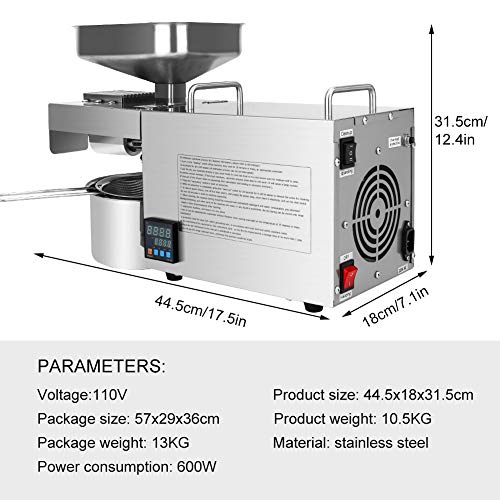 - ❤【AlTA RENDIMIENTO DE EXTRACCION】No sólo tiene alta eficiencia de producción, tambien tiene alto rendimiento de extracción de aceite, Usa el principio de presión física copiando la forma tradicional para extraer el aceite lo más posible profunda, el rendimiento de extracción de aceite puede alcanzar por medio de 67%, que puede variar según las materias primas.