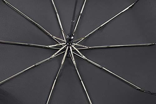Paraguas Plegable Hombre Azul Negro - Elegante Mini Compacto Colores Solidos - Ligero Antiviento de Fibra de Vidrio - Abre y Cierra Automatico - PFC Free - Diametro Grande 104 cm - Perletti (Negro)
