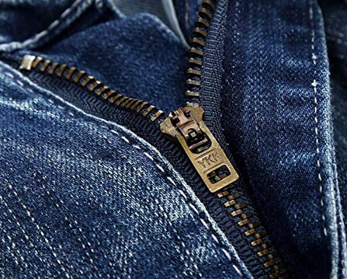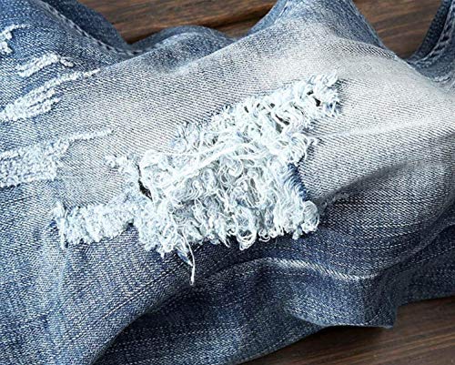 BOLAWOO Hombres De Mediana Cintura Bomba Micro Rasgada Recta De Ajuste Mode De Marca Delgado Denim Pantalones Vaqueros Sin Mortero (Color : Azul, Size : 33)