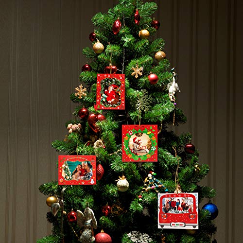 - CUELGUE ESTOS ADORNOS NAVIDAD EN SU HOGAR: Cada decoración de navidad para el hogar viene con agujeros para que pueda colgar el marco desde que coloque la foto. Sujete una cuerda a sus decoraciones y cuélguela en su árbol, como parte de una guirnalda o puede colocarlos por toda la casa.