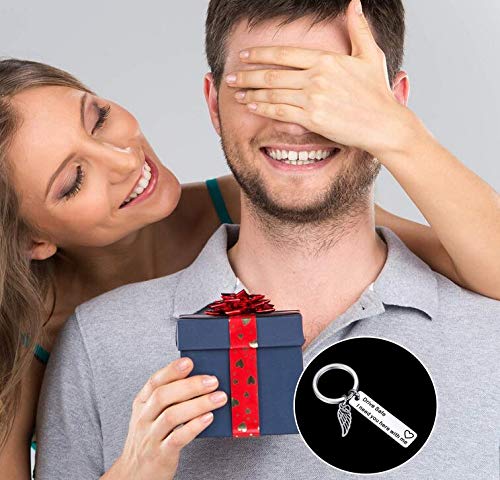- Diseño único: estos llaveros están bien hechos con letras grabadas: Drive Safe I need you here with me, y el colgante de ala del ángel muestra los mejores deseos para el destinatario.