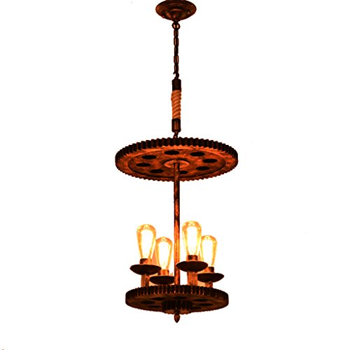 QFF Araña de Estilo Industrial del Engranaje, araña Retra del Arte del Hierro lámpara de cáñamo iluminación de la decoración de la lámpara 4 Cabezas E27, 40 * 50CM Iluminación de Barra