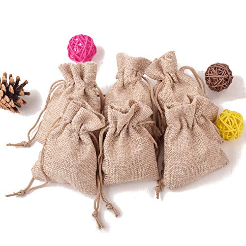 Gudotra Acerca de 100pcs Bolsa de Lino con Cordón para Joyería Regalos Arroz Boda Navidad Bolsitas de Tela Saco