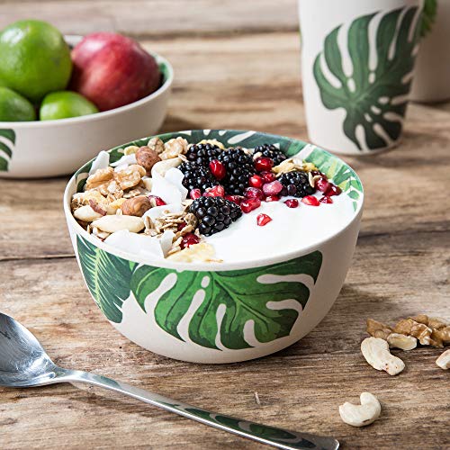BIOZOYG Set Cuencocereales de bambú orgánico Motivo Leafs I Set 4X Cuencos Redondos 14 x 7cm 600ml I Vajilla Melamina Ecológica de bambú Tazón Frutas, Cuenco Cereales Vajilla Campamento