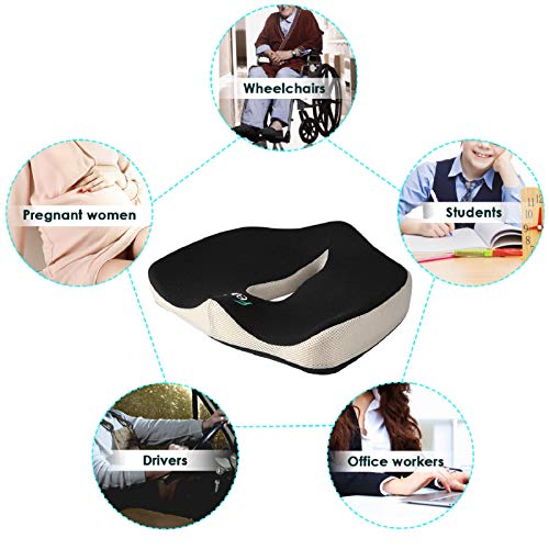 - [Espuma de memoria 100% de alta densidad]: La espuma de memoria de alta densidad mantiene su forma. La suavidad del cojin coxis cambiará con los cambios de temperatura, para proporcionar un mejor soporte y comodidad. Para la multitud sedentaria formando las caderas perfectas.