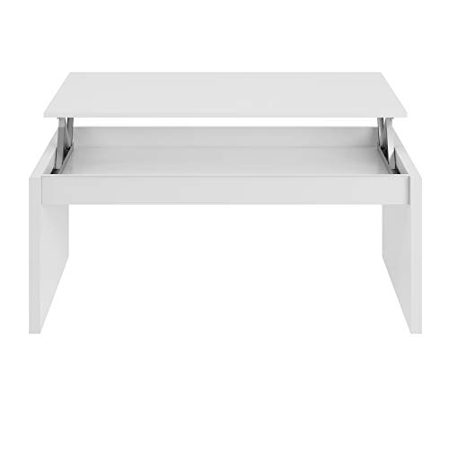 Habitdesign 001638BO - Mesa de Centro elevable, mesita Mueble Salon Comedor, Medidas: 102 cm (Ancho) x 50 cm (Fondo) x 43/52 cm de (Alto) (Blanco Brillo)