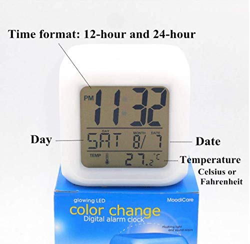 - Con diferentes luces LED que emiten luz, los siete colores cambiarán para crear una atmósfera diferente e iluminar la habitación cuando necesite levantarse. Este mini reloj tiene muchas funciones, puede mejorar la capacidad práctica y la capacidad de pensar de su hijo. Este es un gran regalo para cumpleaños de los niños o amantes