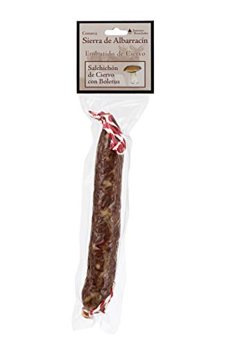- Características: Producto de curación 100% natural y artesanal procedente de ciervos criados en libertad de la reserva de caza de de los Montes Universales de la Sierra de Albarracín, Teruel. Al elaborarlo usamos uno de los recursos naturales principales de la Sierra de Albarracín, el Boletus Edulis, añadido como especia. Disfruta de la auténtica carne de caza.