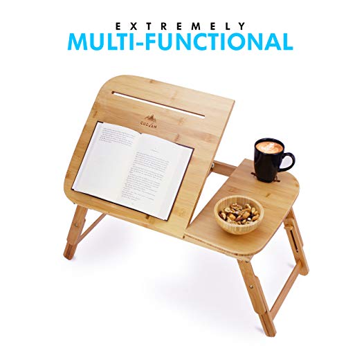 - ✅ MESA MULTI-USO - Podrá utilizar la mesita de bambú en muchos lugares y de muchas formas. Como mesita para leer, escribir o ver películas, bandeja para cenar viendo la televisión, para desayunar en la cama, para pacientes / niños, stand para apoyar el portátil en la oficina, atril para dibujar, pupitre para niños, mesa para ir de picnic o viaje al campo, parque o la playa, estación de trabajo, navegar por internet desde el sofá, jugar con la tablet...