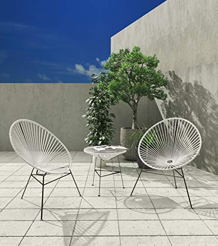 Acapulco silla blanca Sillón metálico cuerdas blancas para jardín, terraza, balcón, terrado, exterior, hostelería. 1 unidad