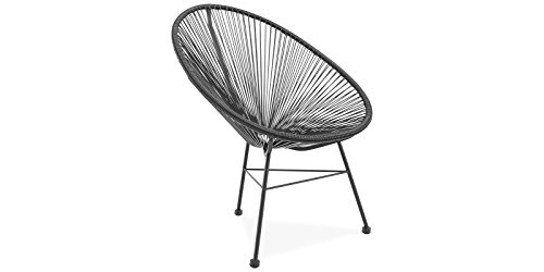 Acapulco silla negro Sillón metálico cuerdas negras para jardín, terraza, balcón, terrado, exterior, hostelería. 1 unidad