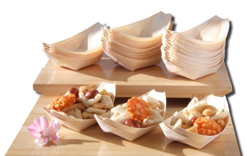 - Barcos de madera de bambú Tamaño estándar - CHECK SIZE WANTED ANTES DE PEDIR! X100 Para los alimentos de fiesta, aperitivos, panecillos, canapé aprox. 115X75 mm Bandeja no incluida No apto para líquidos