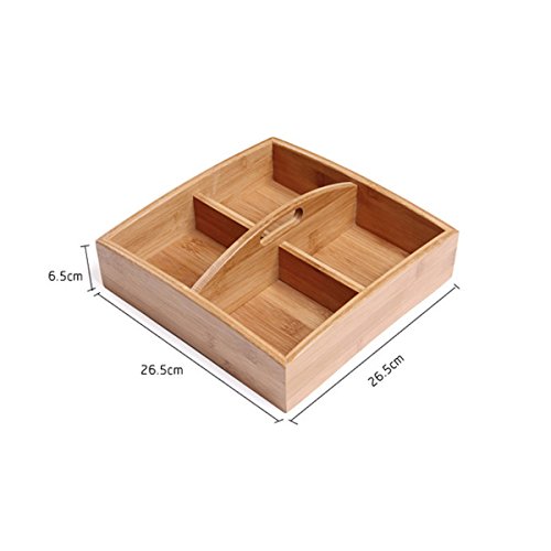 Caja de madera organizador caja de almacenamiento de alimentos secos cuadro caja de presentación para aperitivos con asa y 4 compartimentos