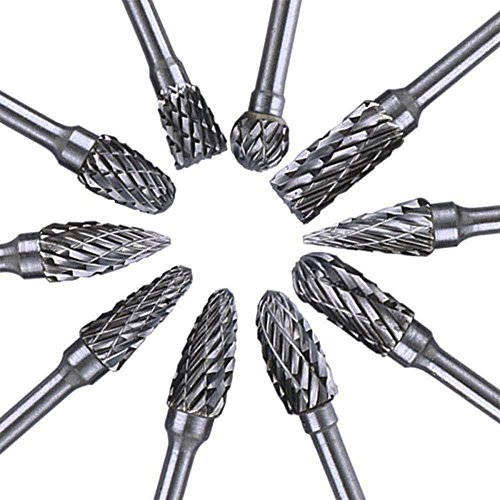 - 【EMPAQUETADO DE GRAN PORTABILIDAD】Consiste en diez cabezales de pulido de acero de tungsteno guardados en una pequeña caja (5.84 * 9.9 * 1.5 cm), que aporta mayor comodidad en la organización. Para su uso, asegúrese de sujetar de manera firme y recta la herramienta, es preferible usar método de corte en sentido inverso para evitar el corte reciprocante. Se debe evitar la dispersión de virutas durante el trabajo.Adecuado para el grabado, biselado, achaflanado, ranurado, escariado y ahuecado.