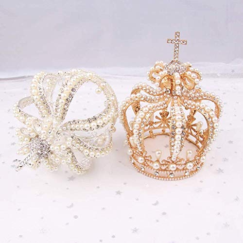 Headwear Tiara Headpiece Hair Band Accesorios para el cabello para mujeres Novia Boda Corona de perlas Elegante Tiara de cristal Exquisita decoración de tartas Mini corona Adornos para tartas para cum