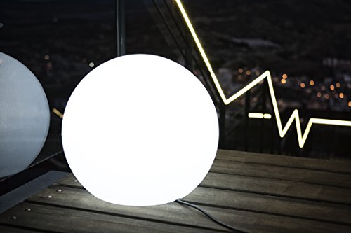 - Lámpara esférica luminosa fabricada en polietileno; medidas 40x35 cm; alta resistencia a temperaturas extremas (viento, lluvia, rayos uv) se puede utilizar tanto en interior como exterior del hogar