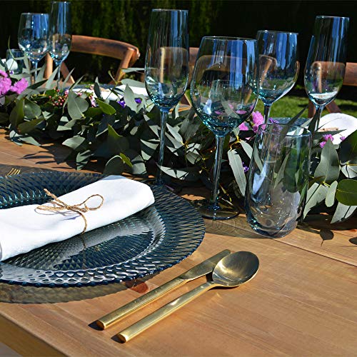 EME Mobiliario Juego de Copas de Cristal en Color Azul Compuesto por Copa de Cava, Copa de Vino y Vaso. 6 Unidades de Cada Pieza.
