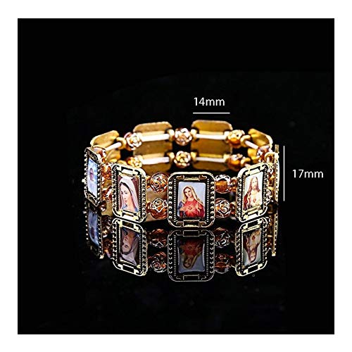 LSBXWL Elástica Pulsera Moldeada de aleación, Pequeño Católica Pulsera Rosario Santa Square, Santo Dios Religiosa Pulsera Rose Icono crucifixión Retro (Metal Color : N00303)