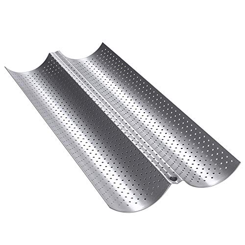 LQKYWNA Baguettes Molde para Hornear, Cocina Casera Pan Francés 2/3/4 Groove Waves Herramientas para Hornear Bandeja Crujiente De Acero Al Carbono Antiadherente (2 Grooves)